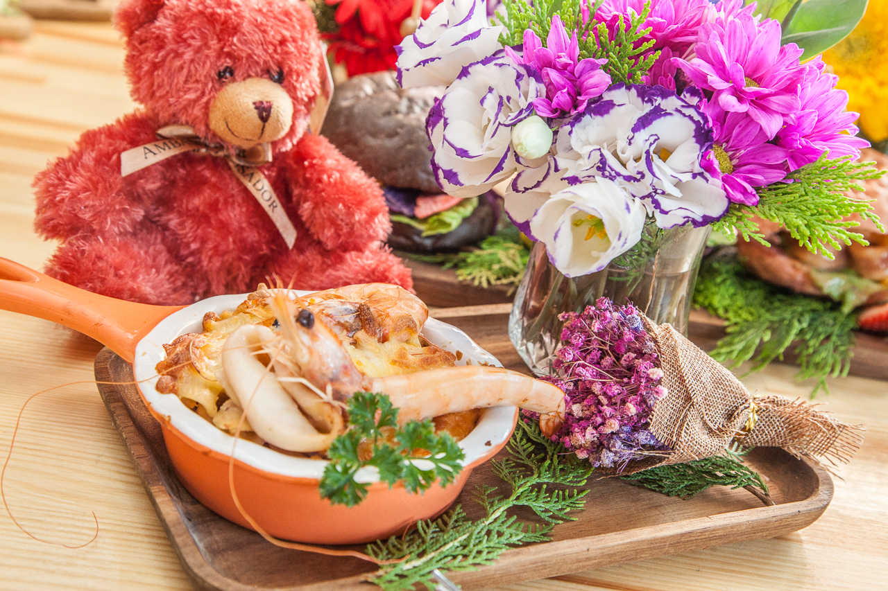 不要說女孩兒們了,就連想咬咬這樣的大男生來這裡也會被融化,女孩有甜點可以選擇,男孩們也有漢堡可以選擇,不管是閨蜜聚會或是情侶約會,在這裡都可以找到自己的喜好,加上夢幻度破表的花牆,再不會拍照的男孩都能把自己的女朋友拍美美的,到荷芙亭打卡IG破千讚不是夢!