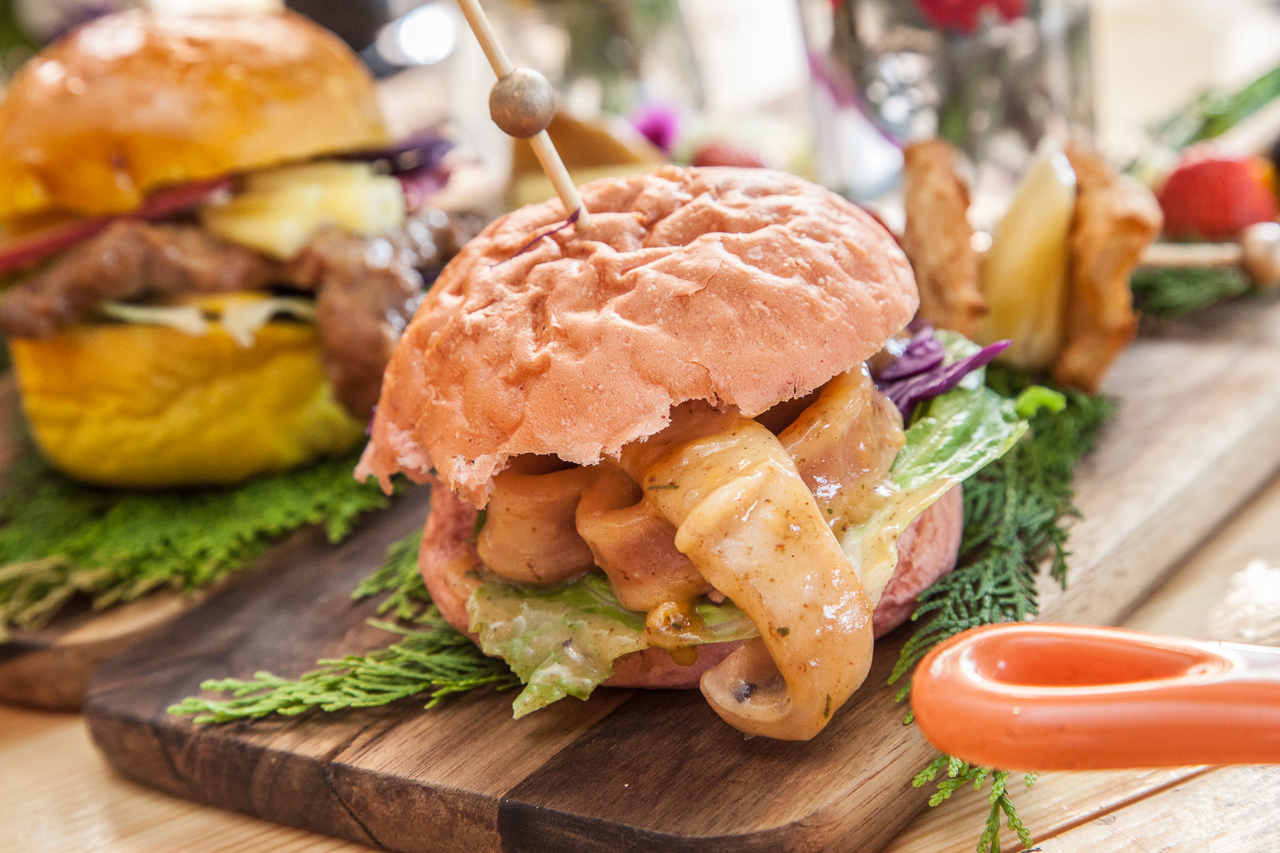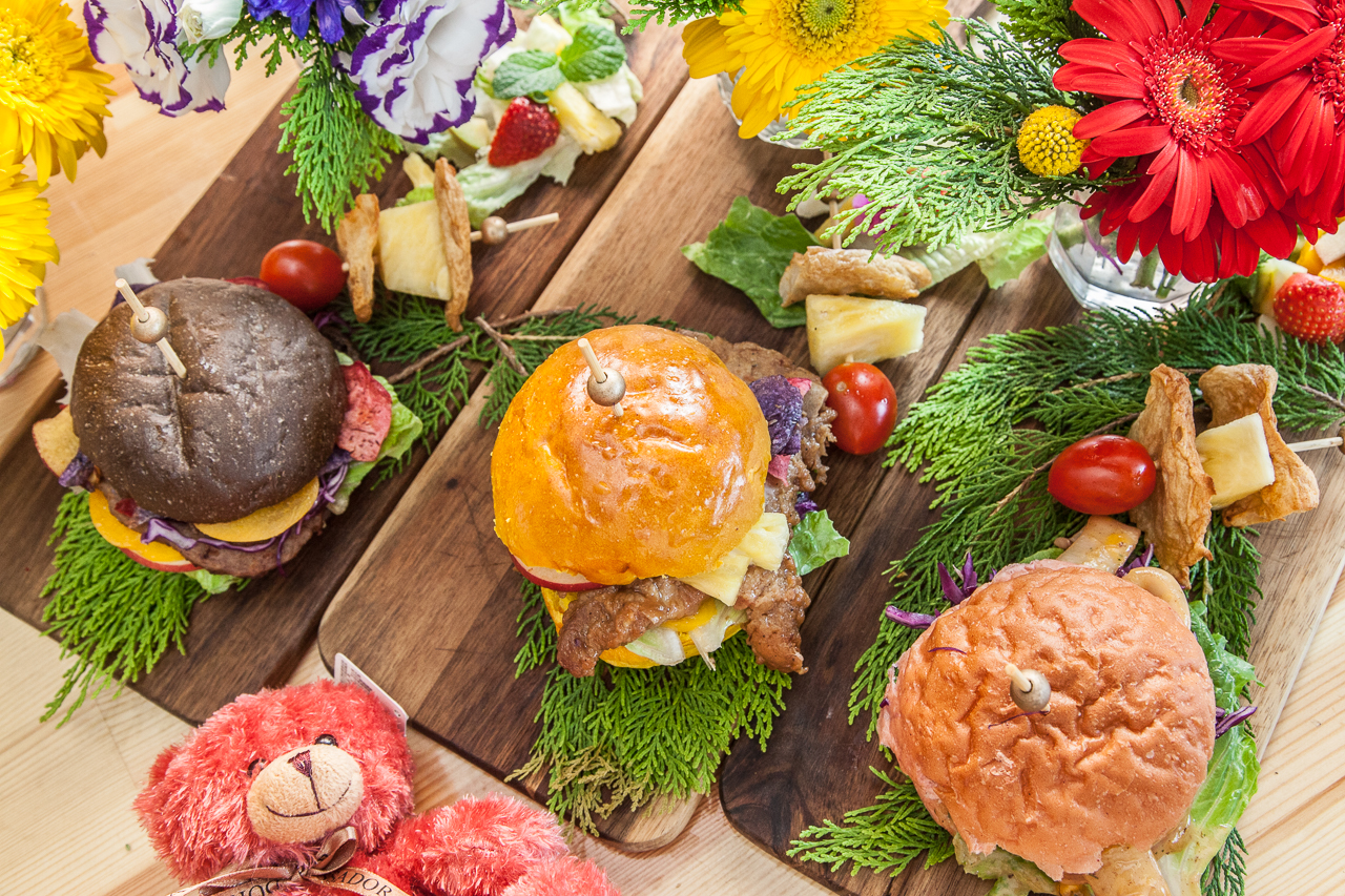 好拍必推三色漢堡:黑色鹿兒島A5和牛堡、紅色荷蘭醬中卷堡、黃色排骨堡