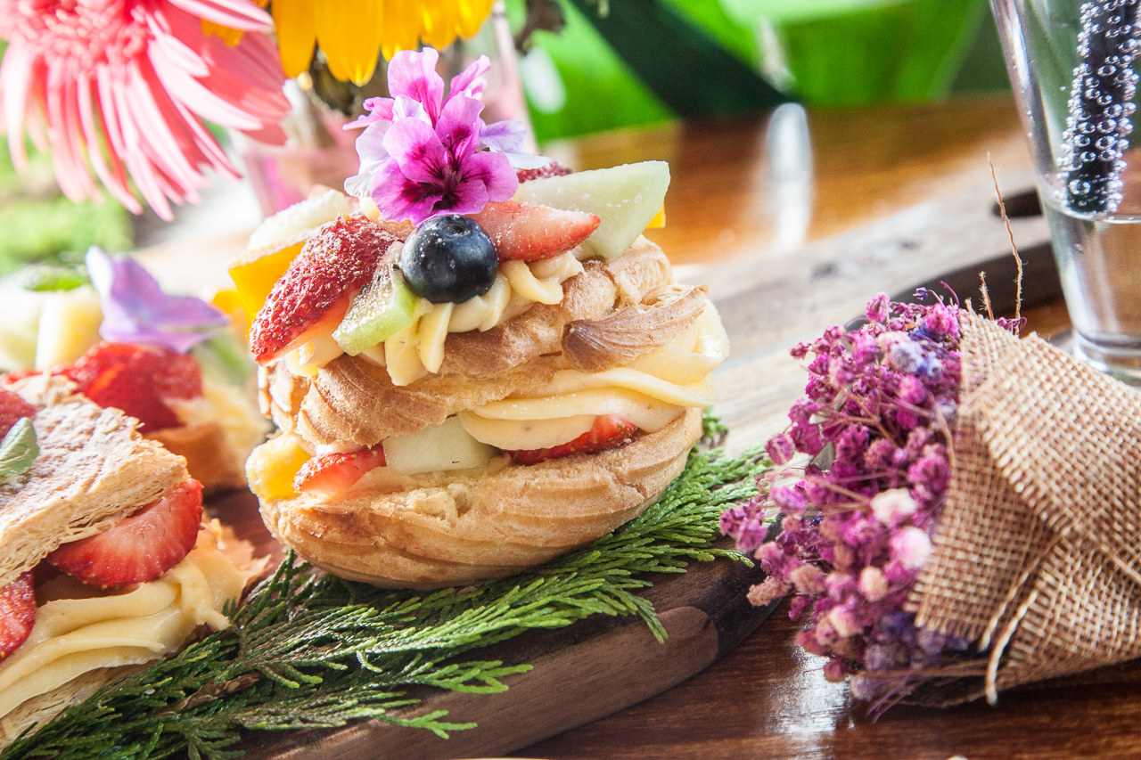 水果泡芙不囉嗦就是當季水果堆滿滿,泡芙皮也是自製的,口感膨鬆酥脆還有蛋奶香,卡士達醬同樣也不假他人之手,柔滑軟綿,甜蜜的在口中蔓延