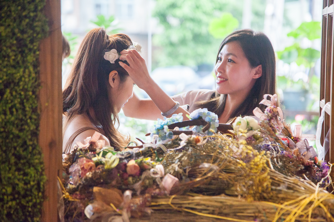 荷芙亭也準備了許多乾燥花的頭飾,讓女孩們可以美美的在花牆前留下漂亮的倩影