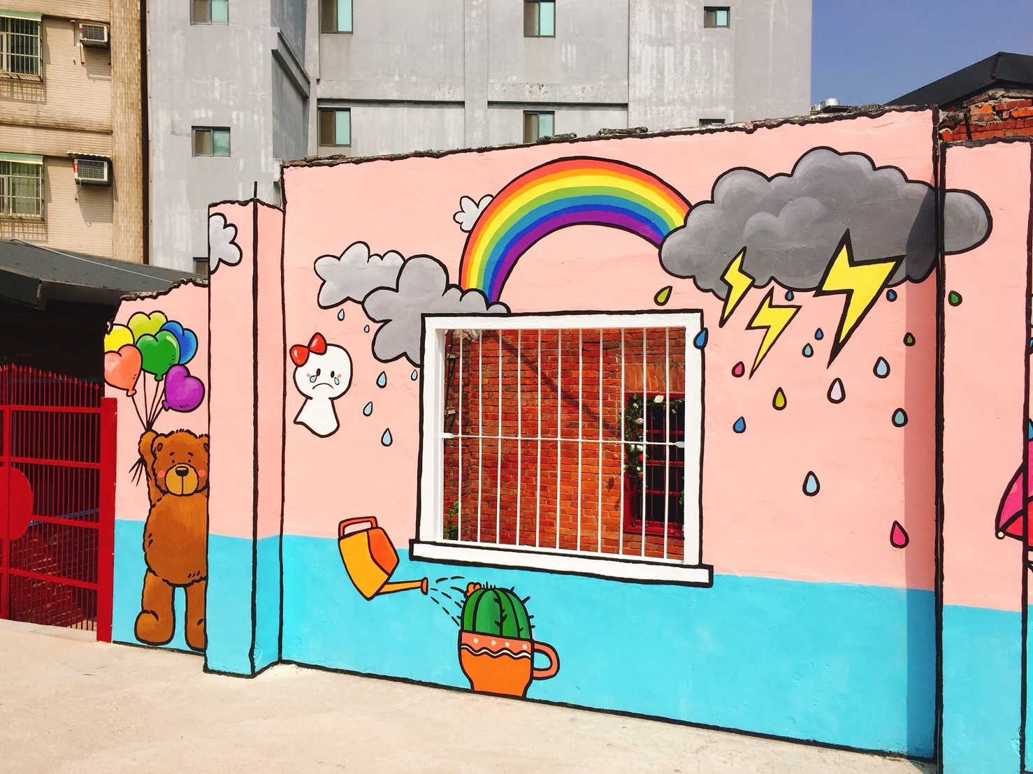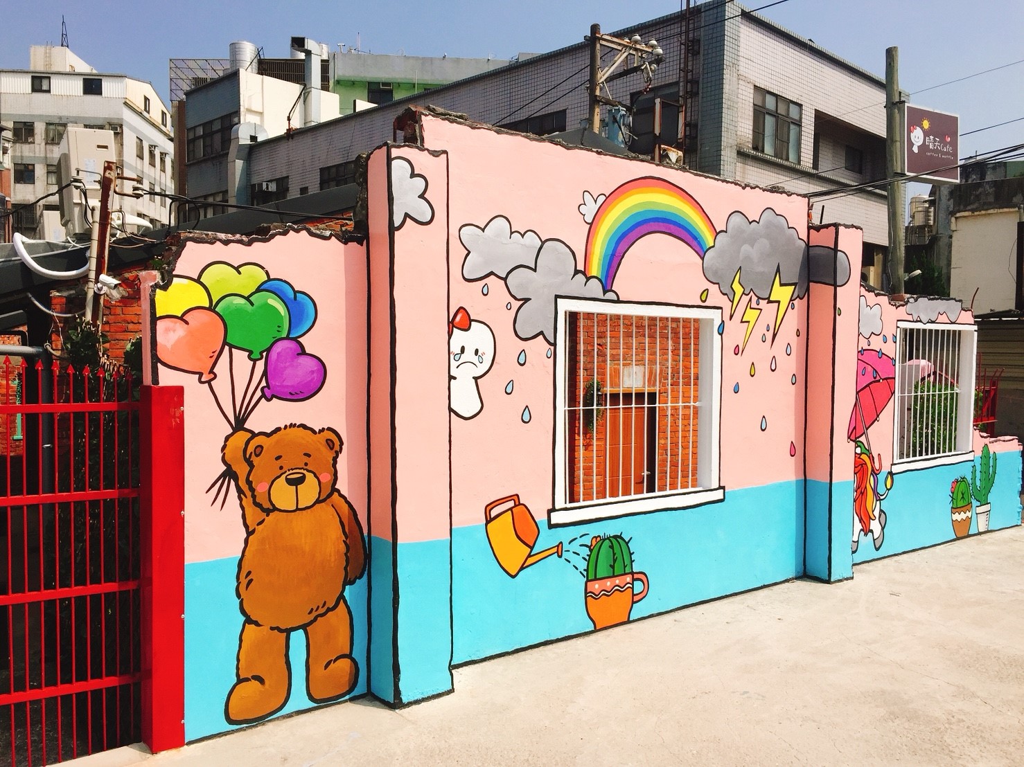 沿著小路就會看到讓大家少女心噴發的彩繪牆