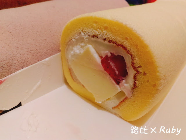 草莓奶凍捲是最有水份的,因為多了水水水份超多的草莓,整個很順口。