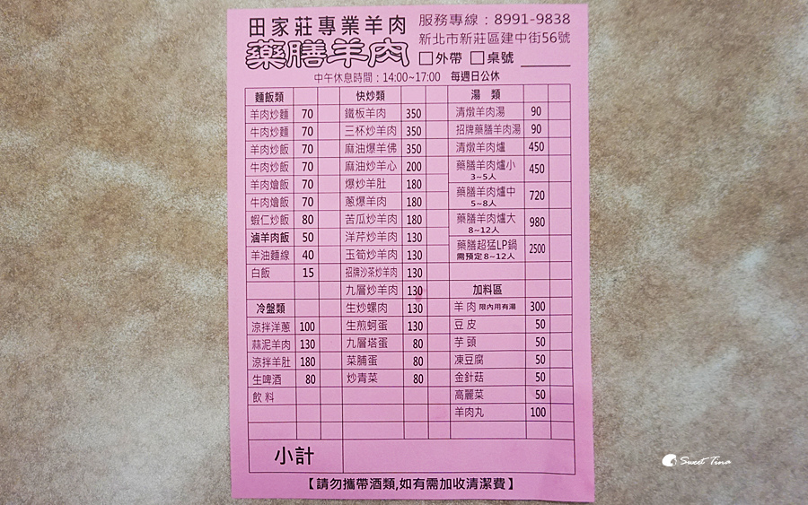 田家莊藥膳羊肉鄰近新莊運動公園,運動完或是看完棒球可以走到這兒享用美味的餐點呢。