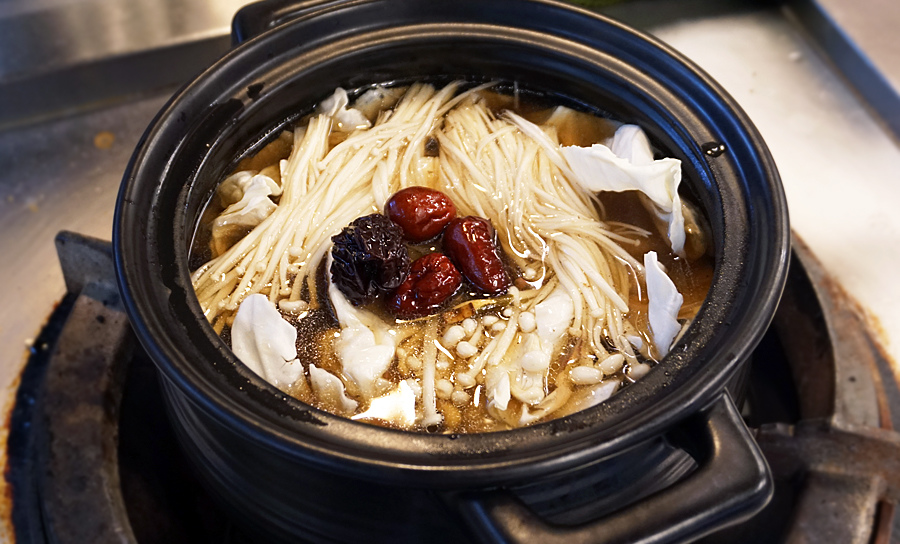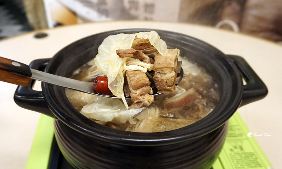 這鍋大約是三人分左右的羊肉爐,裡面除了藥膳羊肉還會加入高麗菜和金針菇,如想另外再加料的話也可以單點喔。