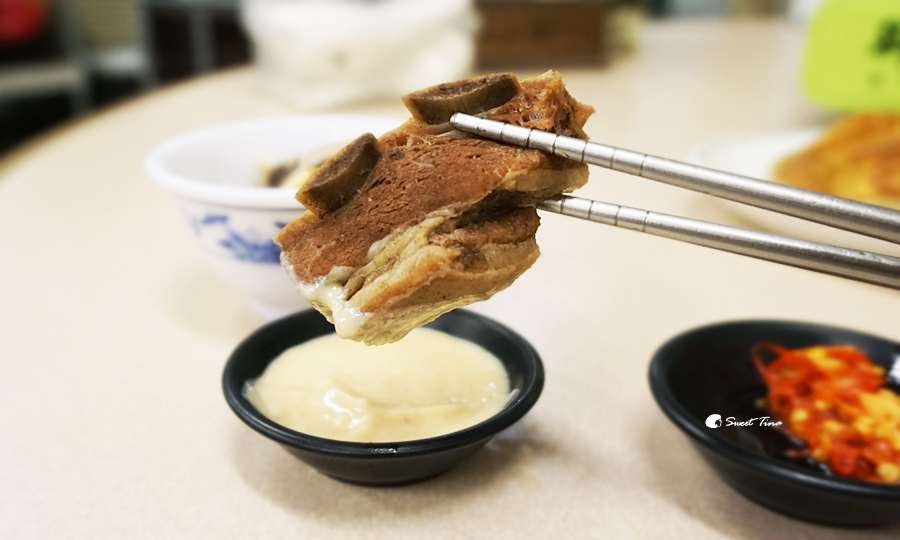 醬料的部份有豆乳醬、豆瓣醬,另外還有老闆自己炒的辣椒醬,不會放在抬子上,喜歡吃辣的朋友可以和老闆索取喔,這辣椒真的很香但也無比辣,我每次都只敢沾一點,但又忍不住想一直沾XD~