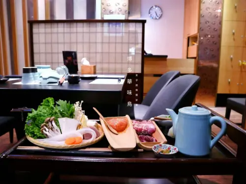 坐上位置後店員提供了置物籃讓客人放包包,送上菜單並倒上茶水,