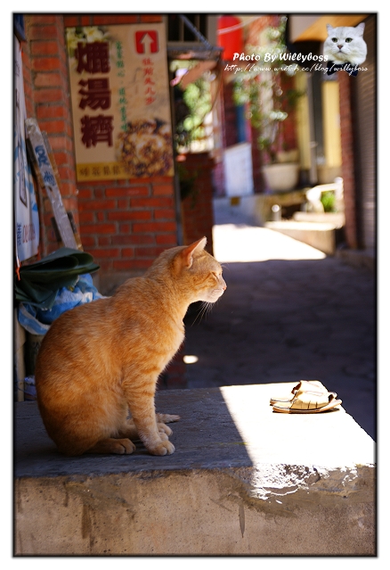 在桂花巷巧遇的橘子貓,看起來很乖的坐在某戶人家門口。