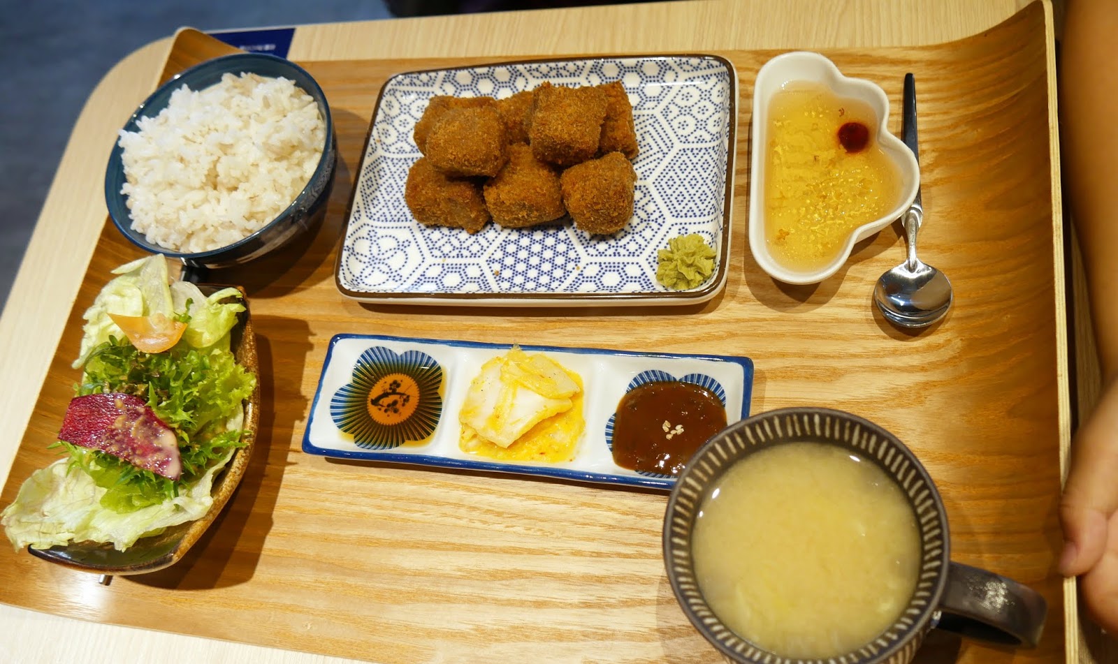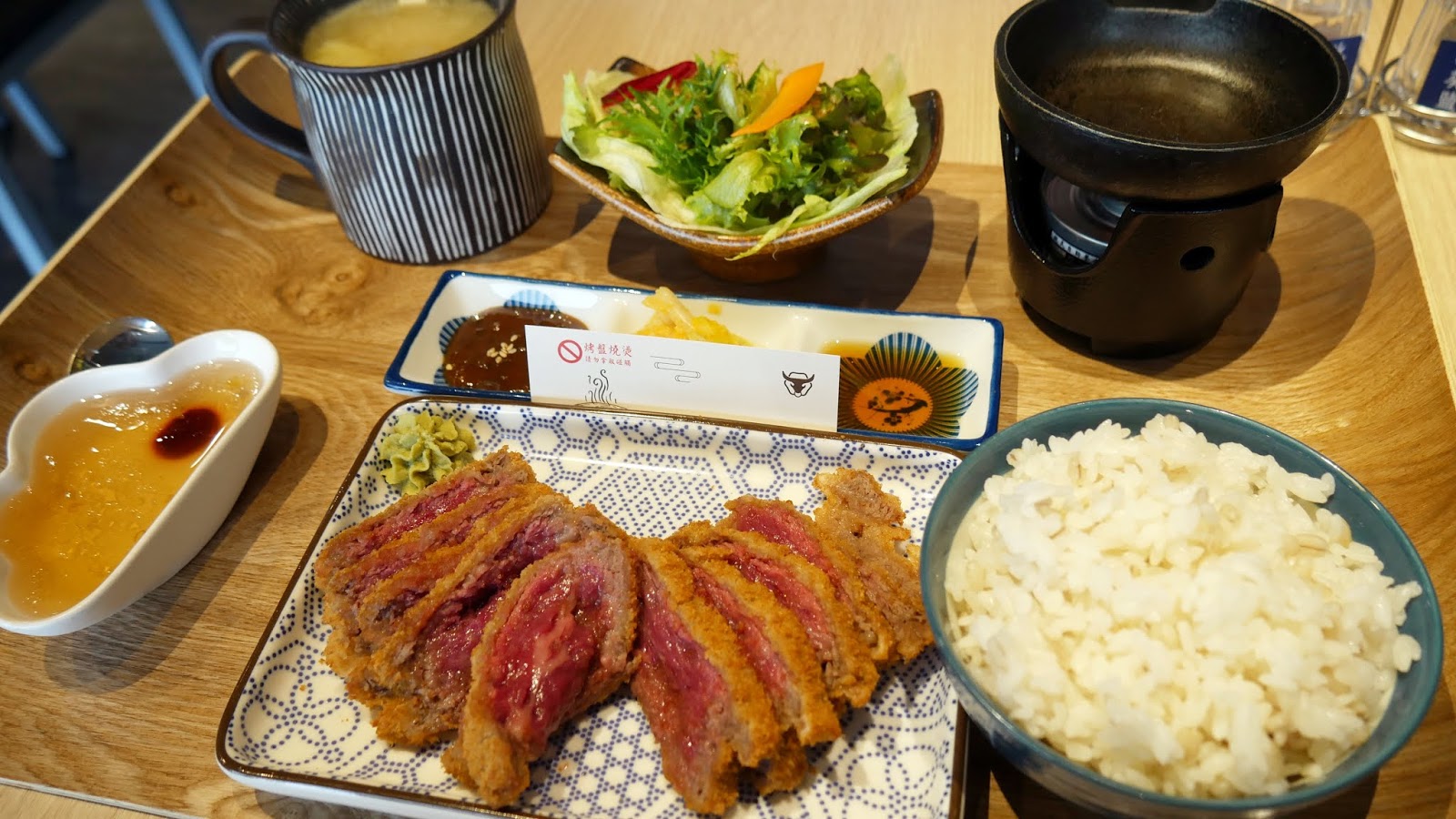 所以我們點了上面那一排三個牛排,小裘最近的食量開始大增,所以也點了一個牛立方定食給他吃。