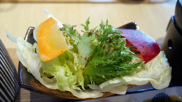 桌上還有兩瓶玫瑰鹽和山葵鹽,我都有試試看,不過沾鹽總是感覺比較鹹一點,我還是最愛哇沙米。