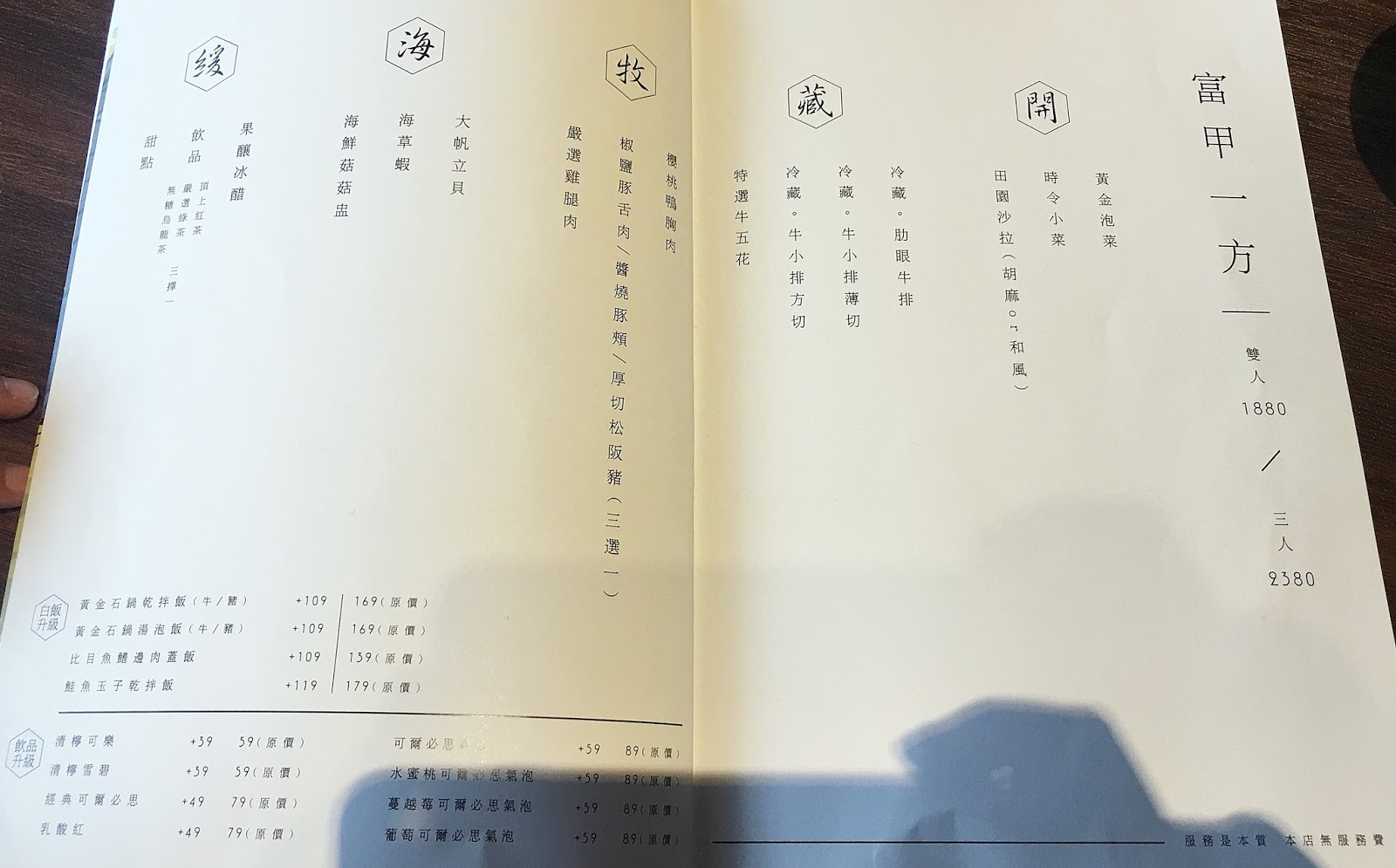 我們點了這個叫做<富甲一方>的套餐,有分雙人和三人不同價位。