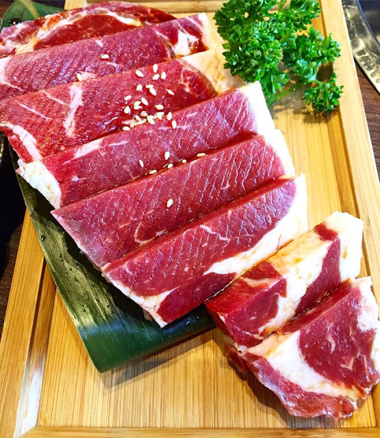 首先兩大盤是牛肉系列,這一盤有特選牛五花,以及方切和薄切兩種牛小排。