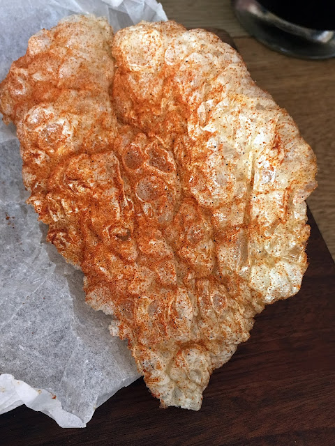這是開胃菜豬迪皮,就是炸豬皮耶!好酷!