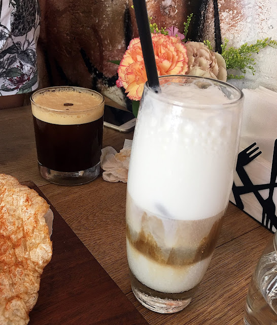 我老公選了美式冰咖啡,我則是加價一點點換了冰卡布奇諾。