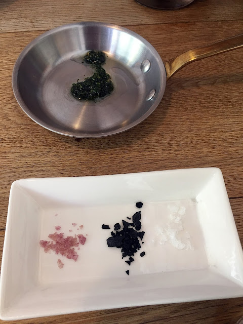 店家附上一些香草橄欖油、還有三種鹽巴可以沾著吃。