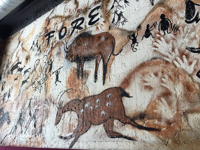 很粗曠的一些畫,直接彩繪在牆壁上,有種原始風格、印地安的感覺。
