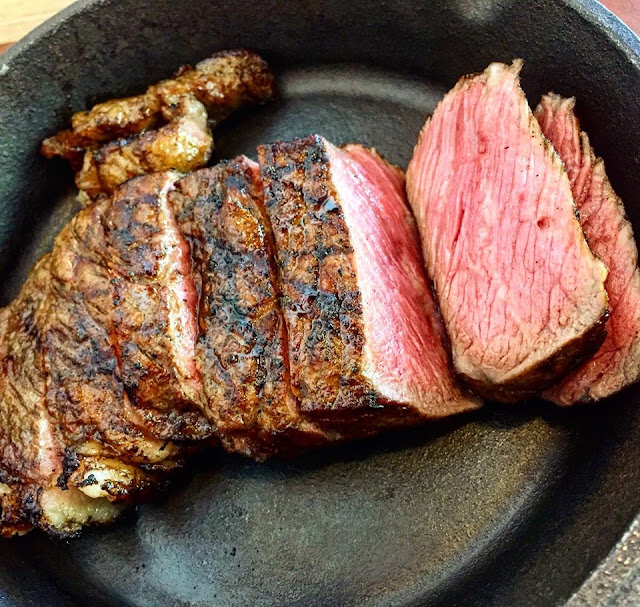再來是最重要的柴燒牛排上場了,這是美國特級肋眼。