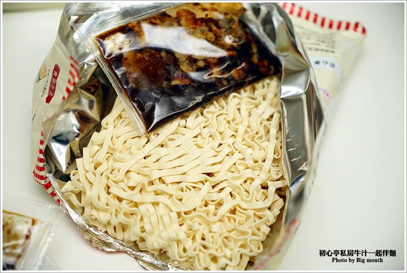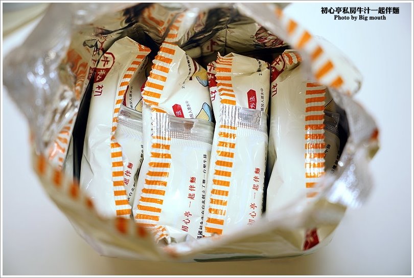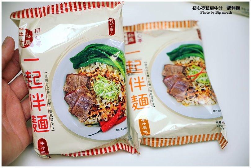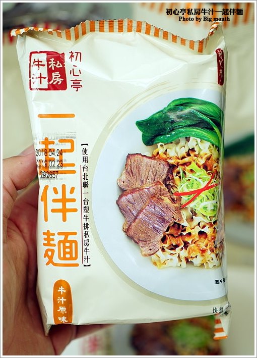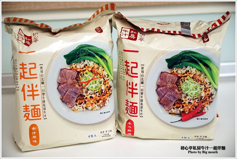 ▼首先來看看初心亭私房牛汁一起伴麵吧!每一大包裡頭有四包入,橘色是原味,紅色則是辣味!