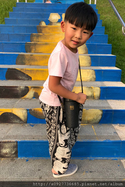 滾滾邊走還不忘邊回頭跟我說,媽咪這邊的樓梯好可愛耶