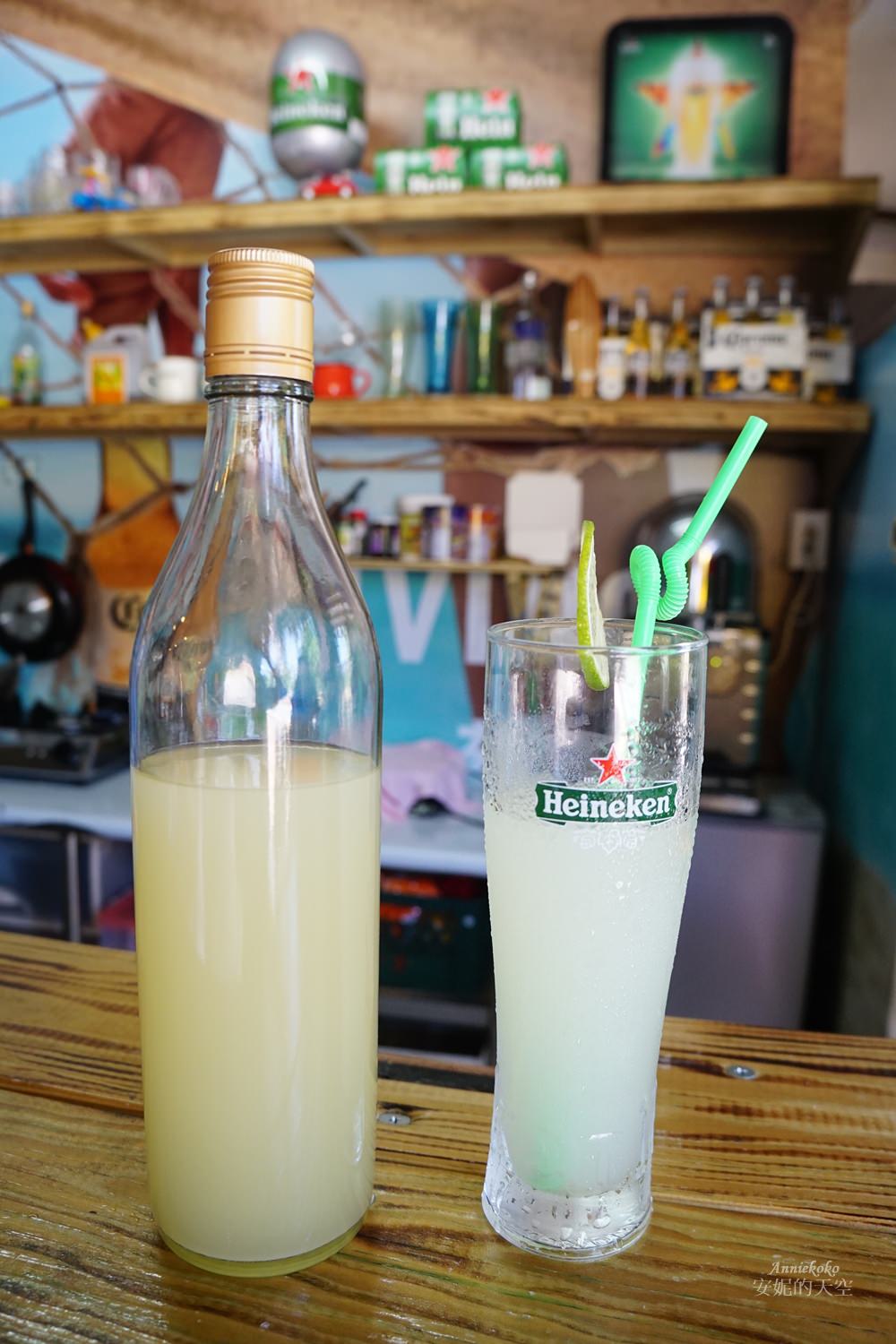 小榆還在衝浪店旁設計了一個小酒吧區,這裡提供簡單的輕食與熱食,還有適合夏天狂歡飲用的調酒,當然也有一般的果汁汽水等,下水玩之前也要補充一下足夠的體力與水分。