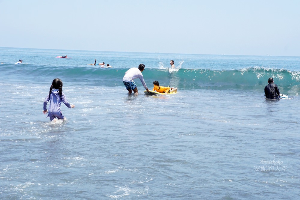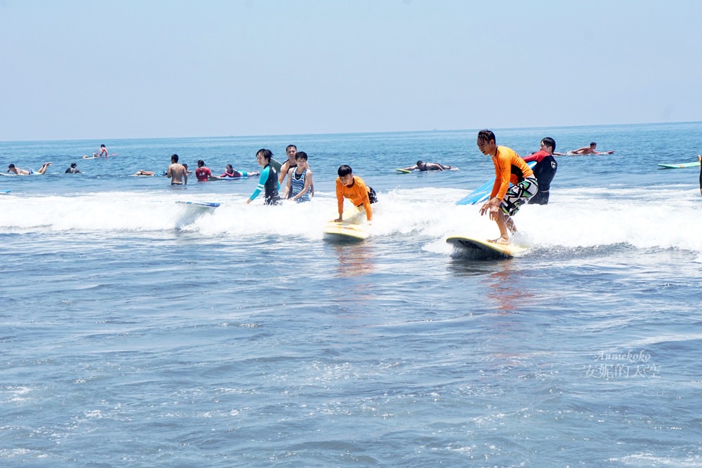 這天是早上來衝浪,人潮還不會太多,不會人擠人,是非常舒服的衝浪場地,如果想要人少一點的時候衝浪,建議可以在清晨時或是下午傍晚,那時候天氣也不會太熱,玩水衝浪都很合適。