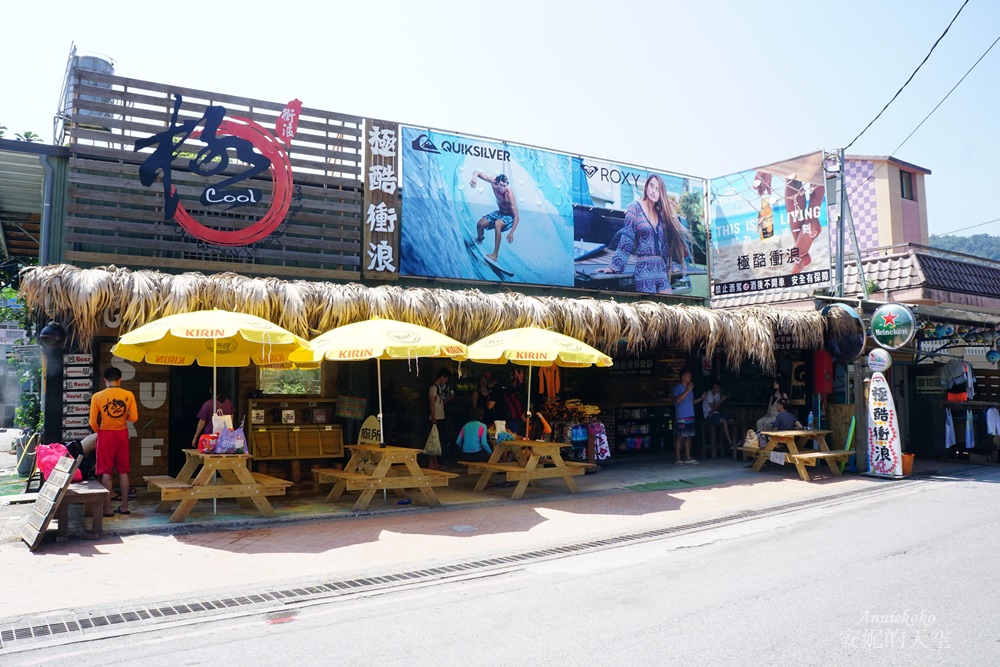 極酷衝浪經過老闆娘親手改造後,整間店面煥然一新,用茅草搭蓋整個棚架,海風一吹來,茅草隨風飄揚,讓整體更有異國風情,豔陽下老闆娘與穿著比基尼的辣妹們熱情地與來這裡的遊客打招呼,還真的很有幾分國外海灘的味道,想要來這裡衝浪可先來電預約,海灘已經有教練隨時等待學員的到來喔。