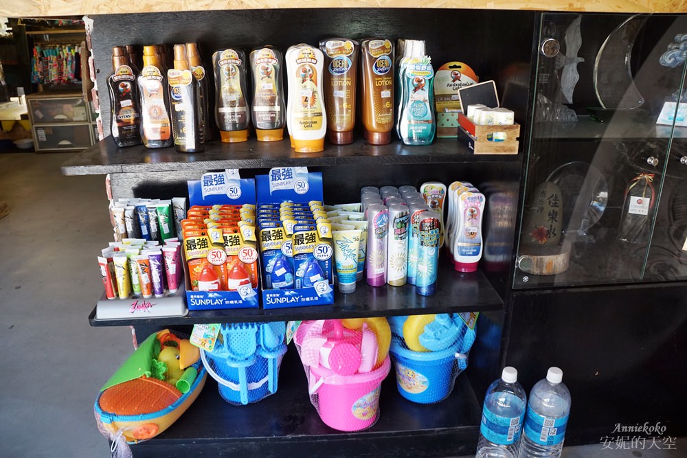 走進店裡,所有的玩水裝備都一應俱全,價格也相當合理,不會像一般觀光地區給妳獅子大開口,像我們已經是準備得相當齊全,但來到這裡還是會想買一些小東西,親民的價格讓人好容易手滑敗家啊。