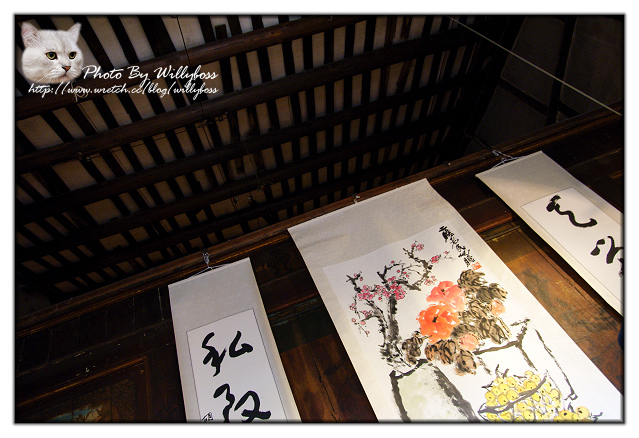上了二樓,挑高的屋頂和幾幅字畫。