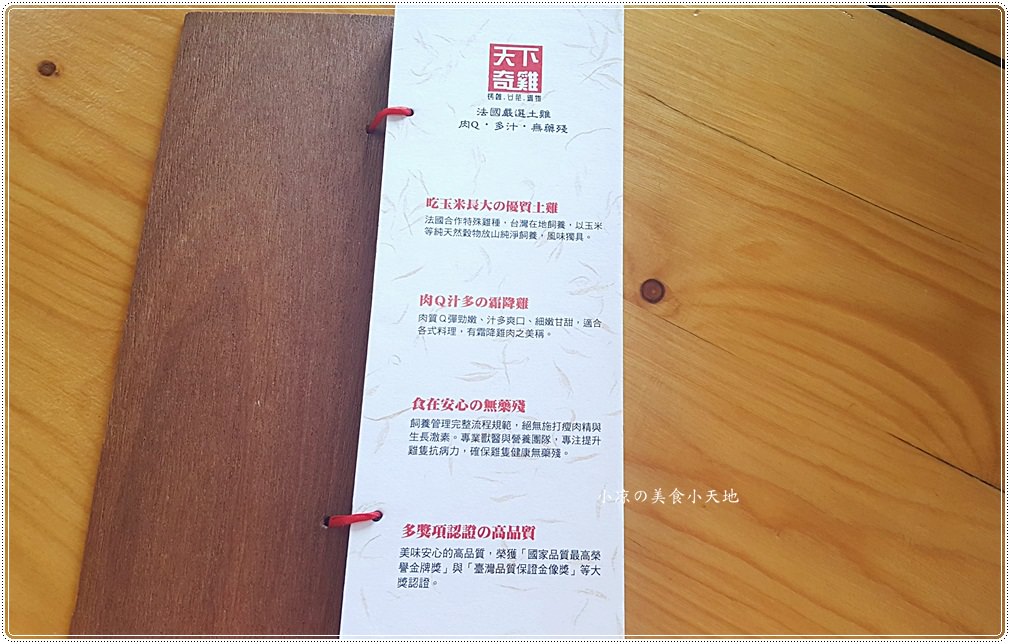 天下奇雞菜單,第一面是灶烤黃金雞的介紹、分享