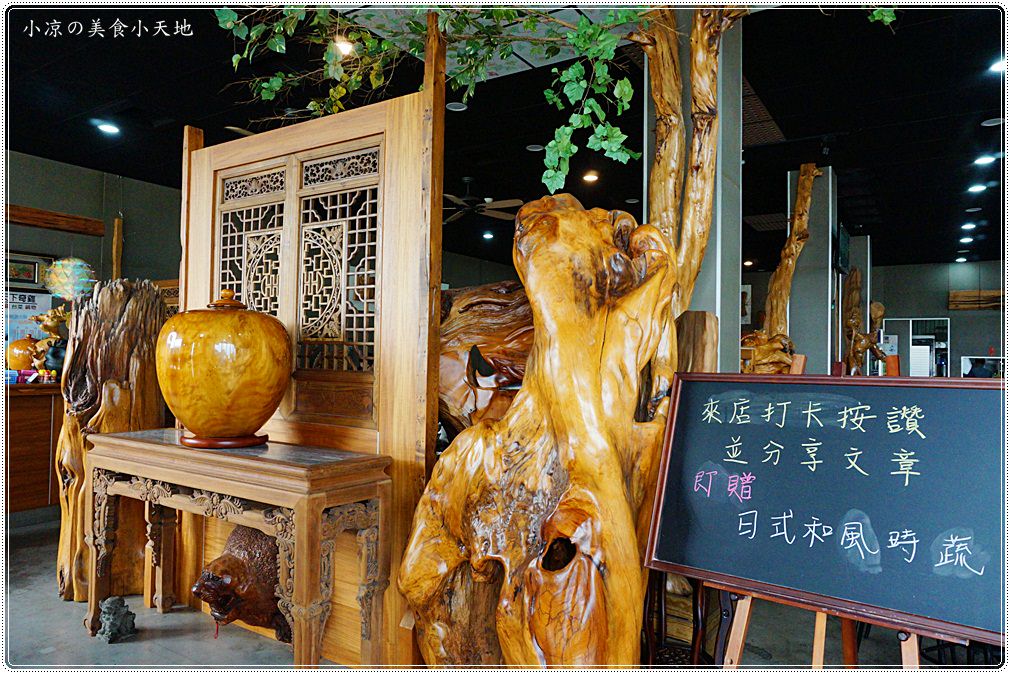 餐桌間有許多店家收藏的藝術木雕,也讓用餐的環境質感提升不已