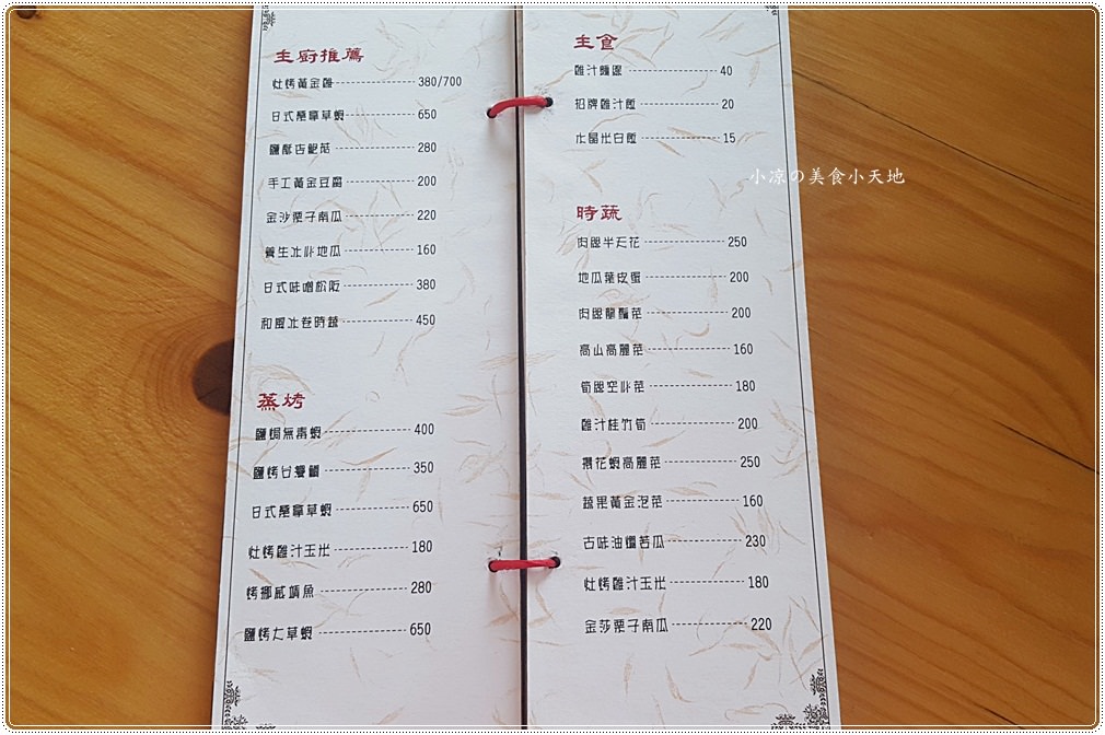 好比小凉很推薦的鹽烤台灣鯛(要烤40分)、灶烤黃金雞…