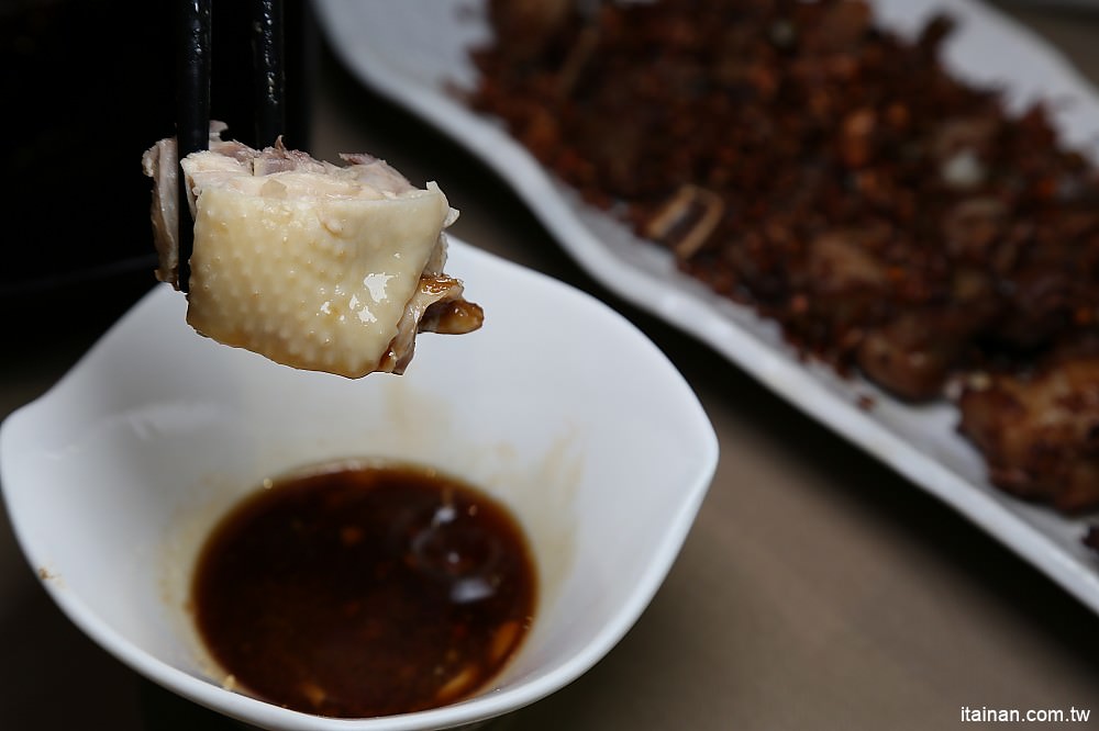來呷飯川食堂選用鹿野黃皮嫩土雞皮薄汁多,淋上特制的天然調味料,更能讓醬汁整個進到雞肉裡面。