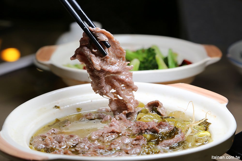 道地的川菜麻辣酸菜魚吃起來更為油膩與重鹹,