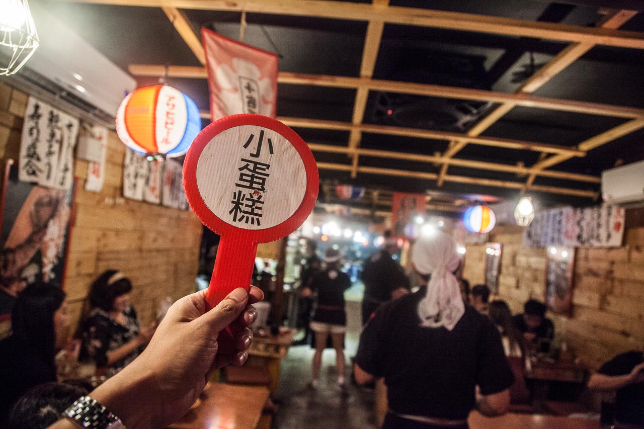咬咬正在專心地吃著美食,前方突然傳出店員們的吆喝聲,原來是一氣水產浜燒專門店的名物:一元起標拍賣會開始囉!一氣水產浜燒專門店每晚會不定時推出一元起標的活動,有很多高價的海鮮會以一元起標現身,像今天有鮭魚頭、海大蝦、龍蝦等等!