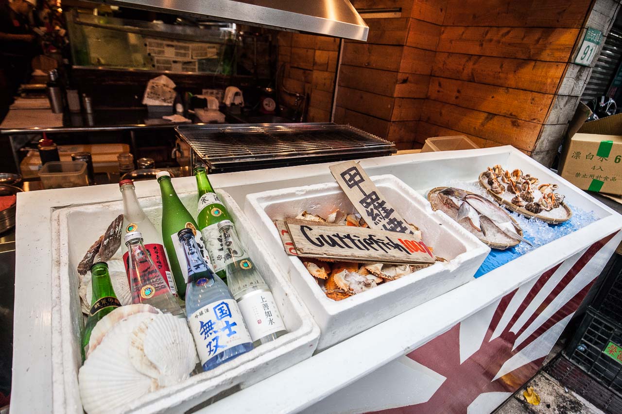 除了尚青美味的海港漁夫料理外,一氣水產浜燒專門店裝潢也超有特色,如果不說還真的以為到了海港邊的浜燒小店,日本漁夫在捕撈回港後,總會把一些"好料"留下來自己享用,收工後便就地取材,裝魚獲的木箱堆一堆成桌子,啤酒箱一倒就是小凳啦,升起了炭爐就烤起海鮮,一氣水產浜燒專門店將漁港粗曠豪邁的用餐氛圍完全移植複製!超酷!