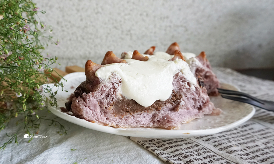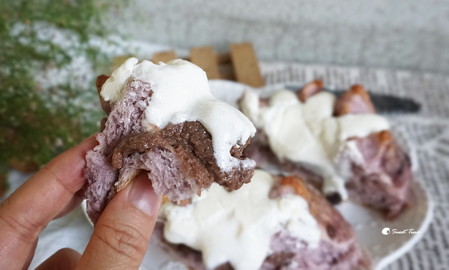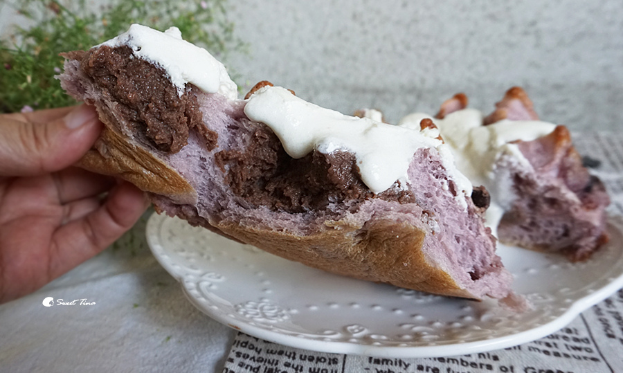 法式卡士達醬 + 紫薯麵糰 +冰冰涼涼的法式巧克力布丁餡,細緻綿密的口感真的讓人很驚豔,而且完全不膩口耶,這款不一樣的麵包口感,大家一定要品嚐看看,推推!