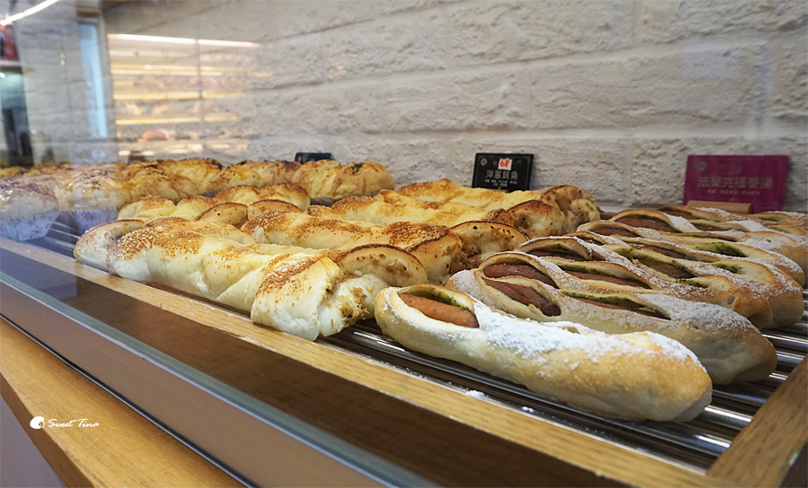 麵包櫃裡提供了各種創意的麵包,是一般麵包店較少見的美味搭配。