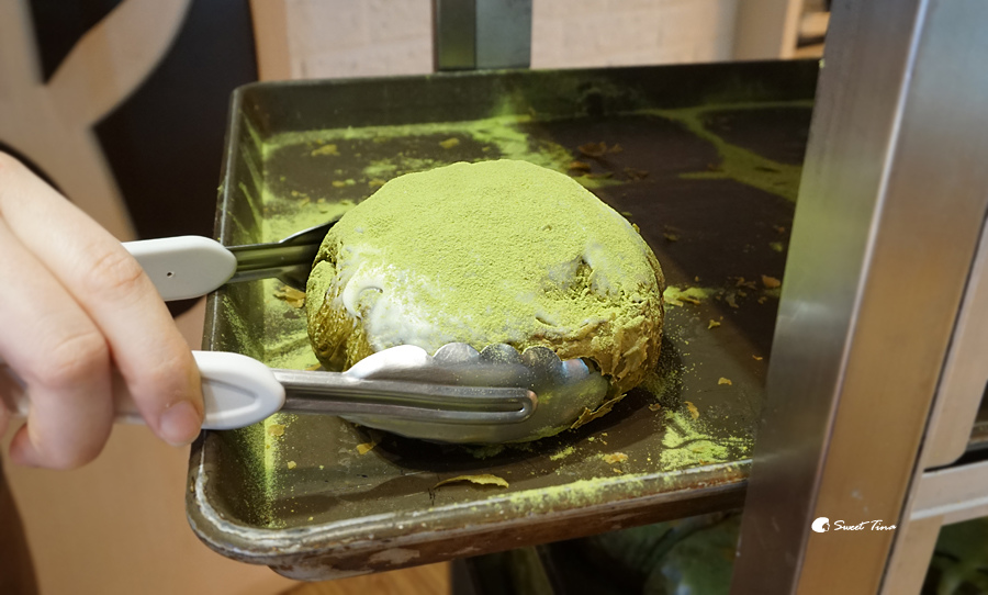 抹茶髒髒包 - 以紅豆麻糬和抹茶粉搭配,連內層的麵包體也是滿滿的抹茶味呢,最棒的是紅豆麻糬一點也不甜耶,是我喜歡的口感,好喜歡抹茶髒髒包的搭配~