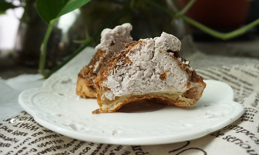 紫紫糰,使用紫薯+芋頭,融入了法式及台灣的雙重口感,是個耐吃的口味。