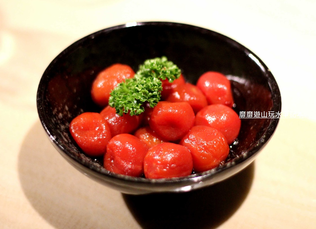 等待著下一道料理的時候還有散發著淡淡酒香的小番茄可以吃,好幸福的感覺呀~