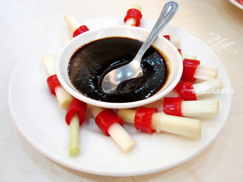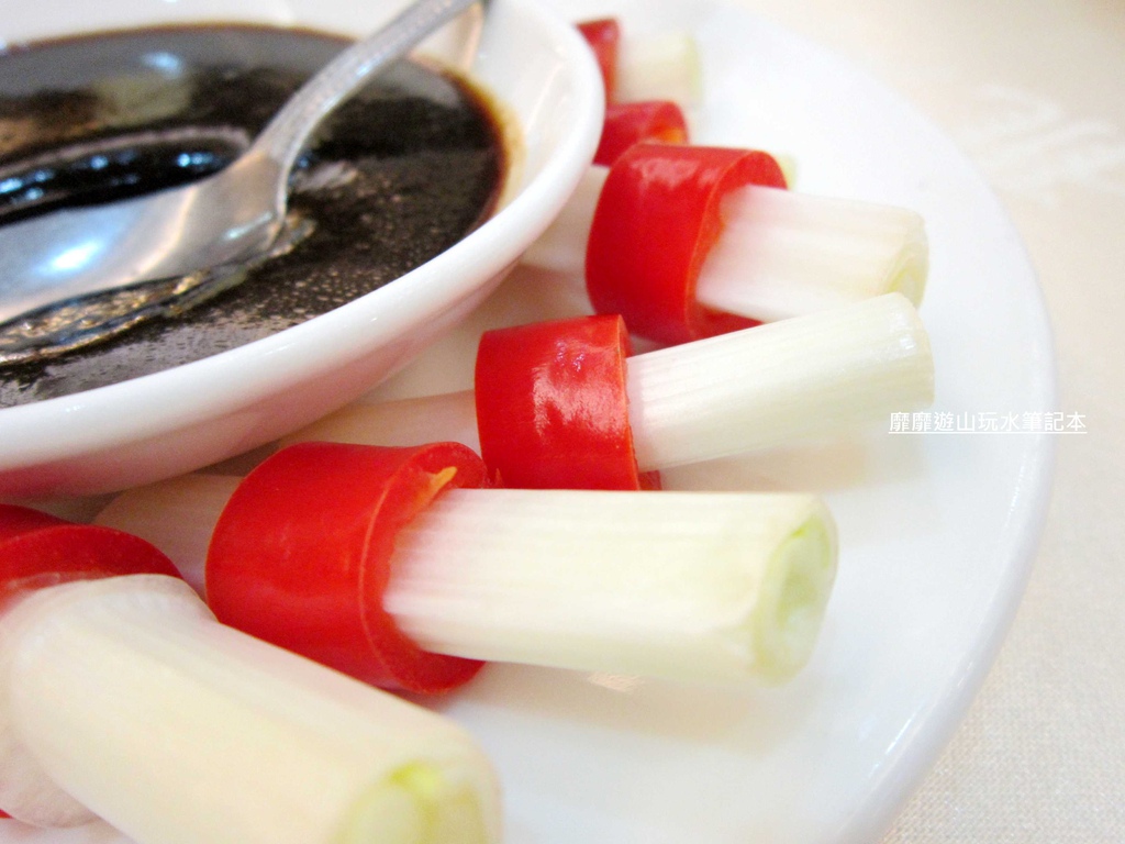 搭配的甜麵醬跟蔥段另外放成一盤~