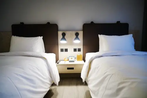 鹿港永樂酒店UNION HOUSE Lukang以原木色調設計,搭配暖光以及柔軟的地毯,