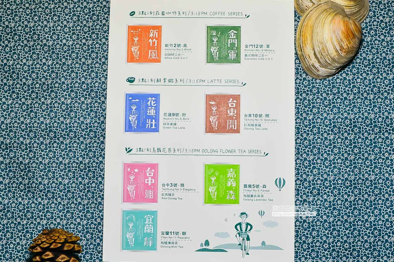 12包飲品,也分別象徵台灣的12個城市,針對了每個城市的特色,包裝上給他下了一個字的精闢註解