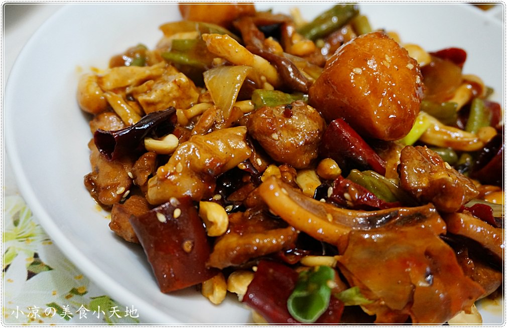 採用新鮮溫體去骨雞腿肉切丁,在與乾辣椒、洋蔥、花生快炒、香氣十足~