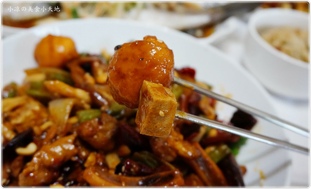看似乾辣椒很多,但紅而不辣、辣而不猛、香辣味濃郁是這道宮保雞丁的特色!
