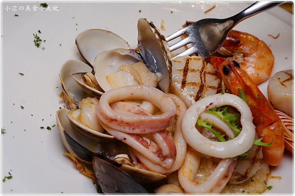 以新鮮的海鮮去川燙後,利用川燙後的湯汁去熬煮義大利米,滿滿的海味都被米粒給吸收