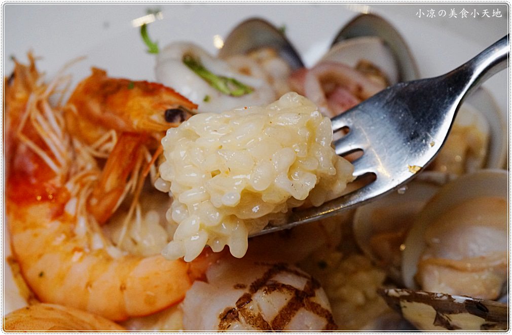 充滿海味的燉飯,吃起來是米心微生的帶硬口感