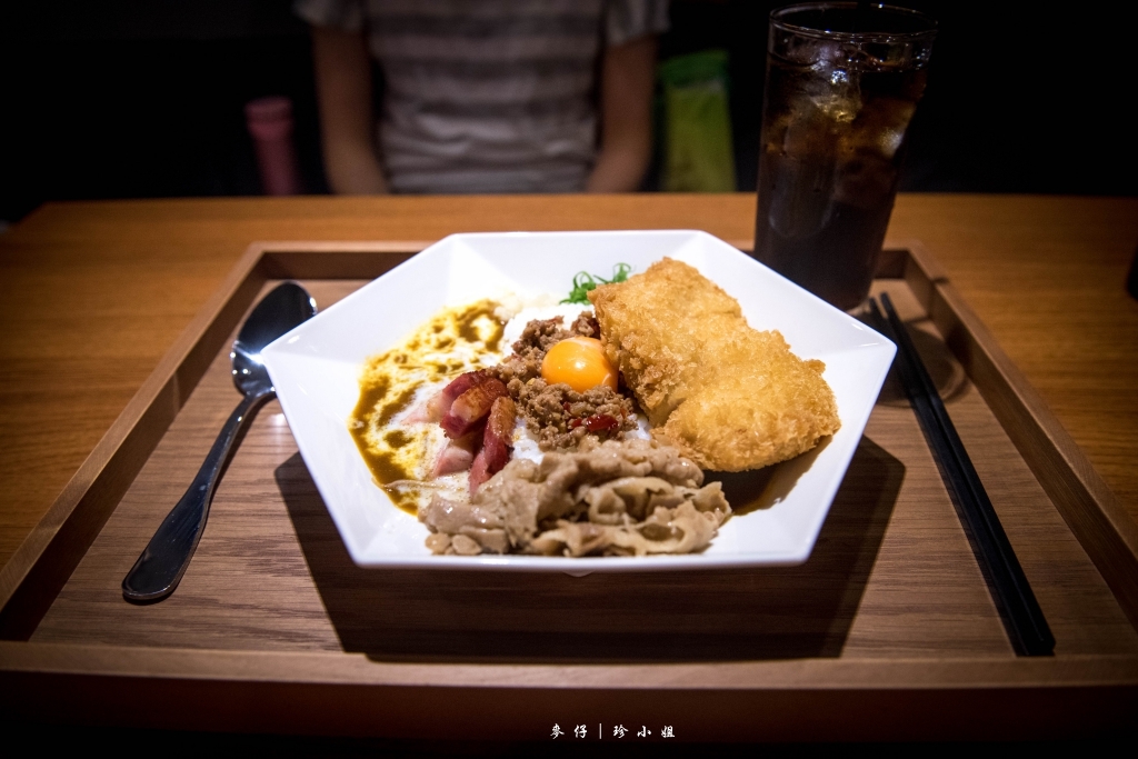 ▲份量真的挺驚人,裡面同樣有咖哩肉燥、厚煎培根、