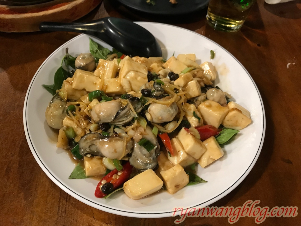 滑嫩多汁的鮮蚵,搭配上同樣滑嫩的嫩豆腐,再加上豆鼓、九層塔和蔥、薑、辣椒爆炒後的香氣,吃在嘴裡,除了鮮味、豆香味,還有一種說不出的家鄉味,如此經典的菜色、精彩的調味,怎麼能夠不來上一盤?