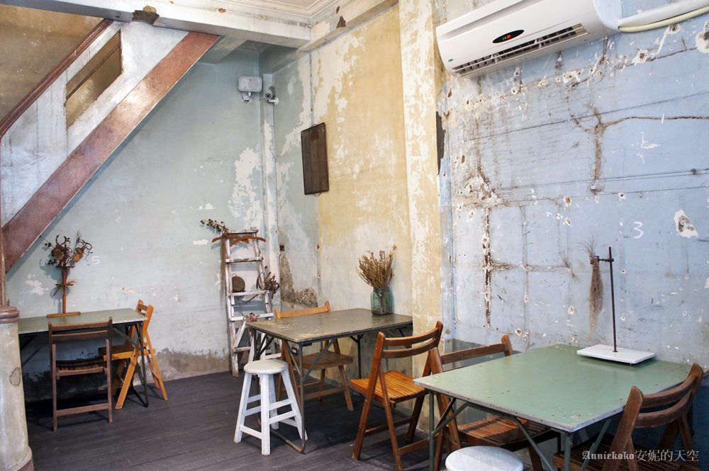 輕輕拉開木門,映入眼簾的是超乎我想像中的斑駁陳舊,牆壁上一大片油漆褪色的痕跡,擺上幾張復古的桌椅,設計師的手彷彿有種魔力,給予了老宅另一種生命力,時間彷彿在這裡凝結住,而過往的屋舍故事悄悄在另一個時空平行上演。