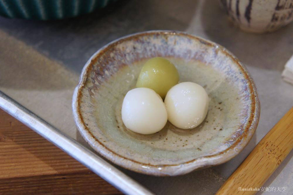 盤中還有三顆白玉,吃起來相當扎實,SUNNY簡直愛不釋口,小巧白玉好有日本味道,光是這器皿就足以讓人神往日本京都的美好。